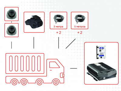 Профессиональный комплект оборудования для круглосуточного видеоконтроля на грузовом автомобиле. Решение на базе надежного четырехканального видеорегистратора Мовирег ВРХ4-ЕН/ВРХ4-ЕНО позволяет вести одновременную запись с трех камер, обеспечивая полный обзор обстановки в кабине и за ее пределами. Это готовая система видеонаблюдения для грузовиков, разработанная с учетом специфики работы грузового транспорта.