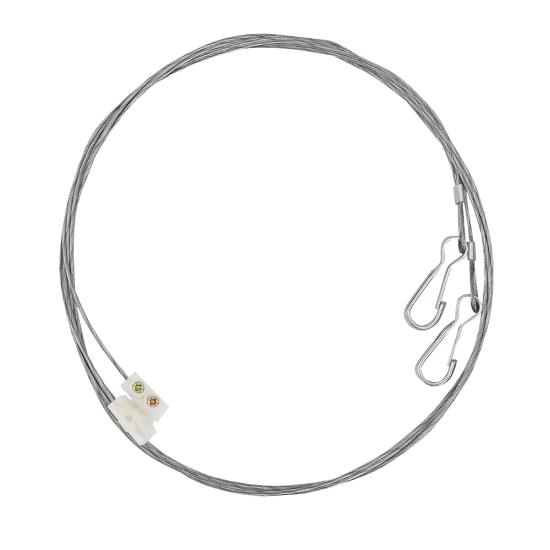 Для крепления световых табло к высоким потолкам. Комплектность: 2 троса (1м), 2 зажима, 2 карабина, 2 клеммных колодки, зип лок.