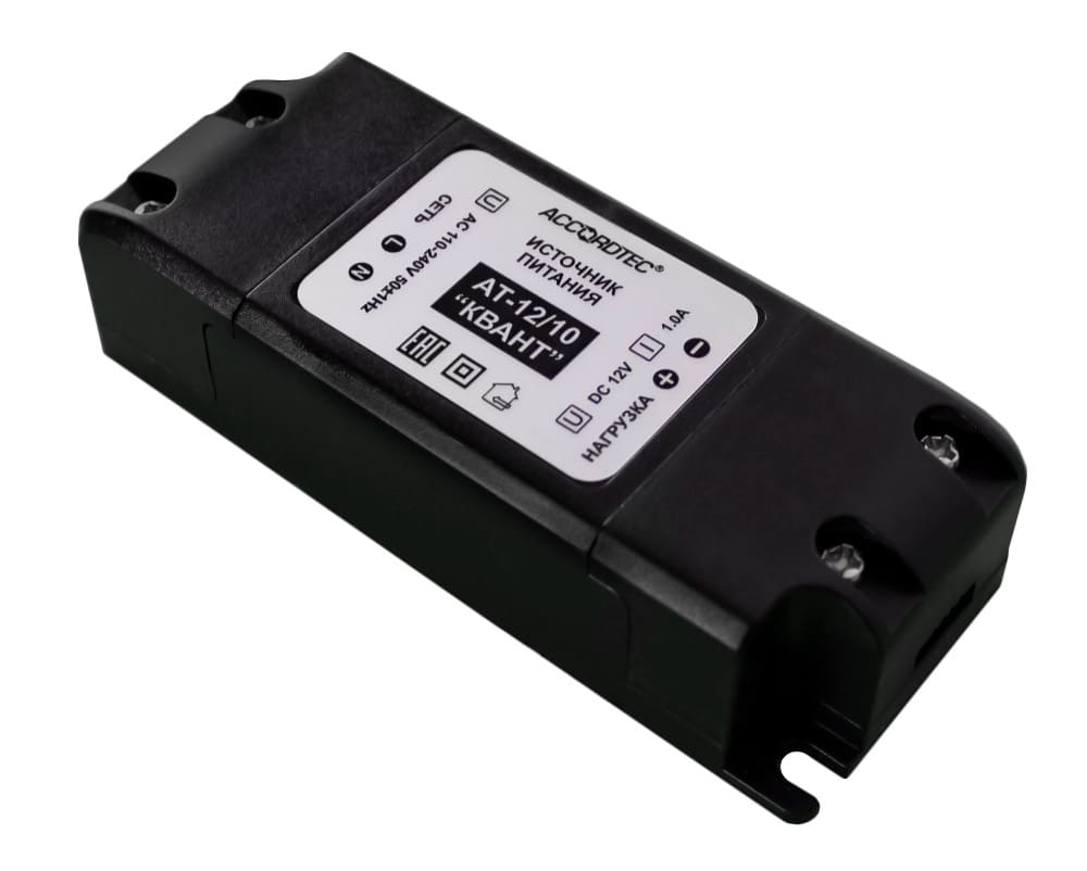 Источник стабилизированного питания Accordtec AT-12/10 Квант оборудован клеммными колодками «под винт» для подключения сетевого кабеля (в комплект не входит) и нагрузки.