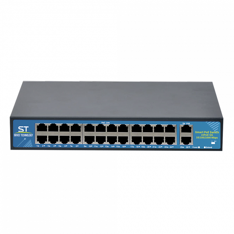 Источник питания ST-S241POE(2G/400W/A), POE вариант A.Switch POE 24-х портовый для обеспечения проводных сетей напряжением 48В, защита от КЗ, защита от КЗ, Extend 250м., AI VLAN, PoE порты: 24 х (10/100 Мбит/с), UpLink порты: 2 х (10/100/1000 Мбит/с), Max.пропускная сп-ть: 100 Мбит/канал(PoE порты),1000 Мбит/канал(UpLink порты), Uвых: 48 (±10%), Р(ном) каждый порт (Вт): 15, Р(макс) каждый порт (Вт): 30, Р(сумм) общая (Вт): 400, Тип РоЕ: А, Коммутационная способность (Гбит/с): 16, Extend - режим работы с увеличением дальности передачи до 250м VLAN-изоляция РоЕ портов, Система охлаждения: активная, металл, Температура эксплуатации: От -45°C до +55°C, Габаритные размеры ИП: 270х180х44 мм.