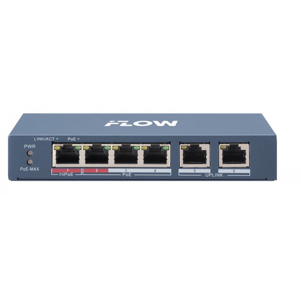 L2, неуправляемый, 4 порта 10/100M RJ45 PoE, 2 uplink порта 10/100M RJ45, 802.3af/at, бюджет PoE 35 Вт, поддержка режима передачи до 300м,10Мб/с, CAT6
