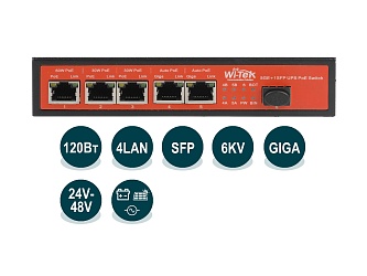 Четвертый и пятый порты работают в автоматическом режиме определения типа PoE, позволяя подключать абонентов стандарта PoE 802.3at/af с мощностью до 30 Вт на порт или Passive 24В PoE с мощностью до 24 Вт на порт.